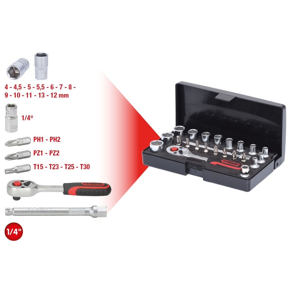 • 1/4" Steckschlüssel-Satz, 26-tlg