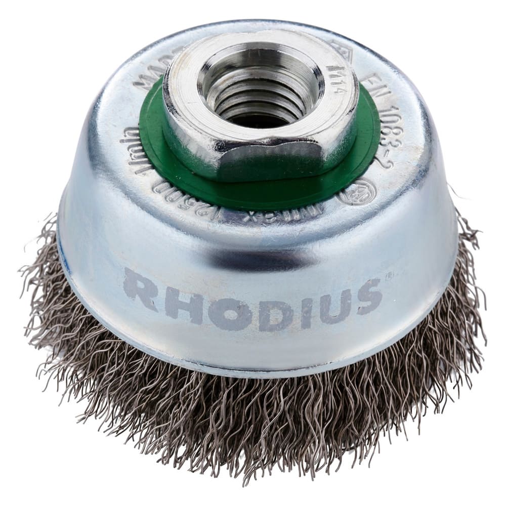 Diese RHODIUS Topfbürste für Edelstahl eignet sich optimal für die Bearbeitung von rost- und säurebeständigen Stählen, hochfesten bzw. hochlegierten Stählen, Baustählen, Werkzeugstählen, gehärteten Stählen und hochfesten Blechen.