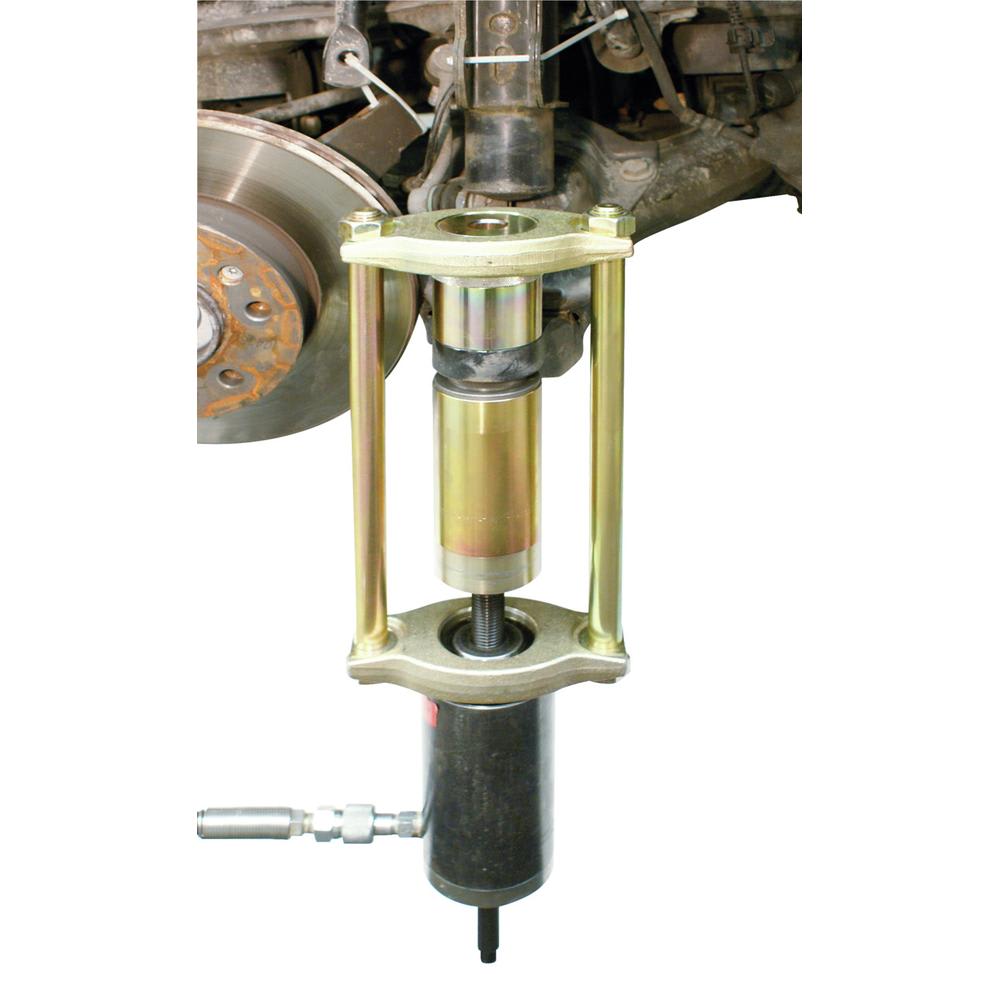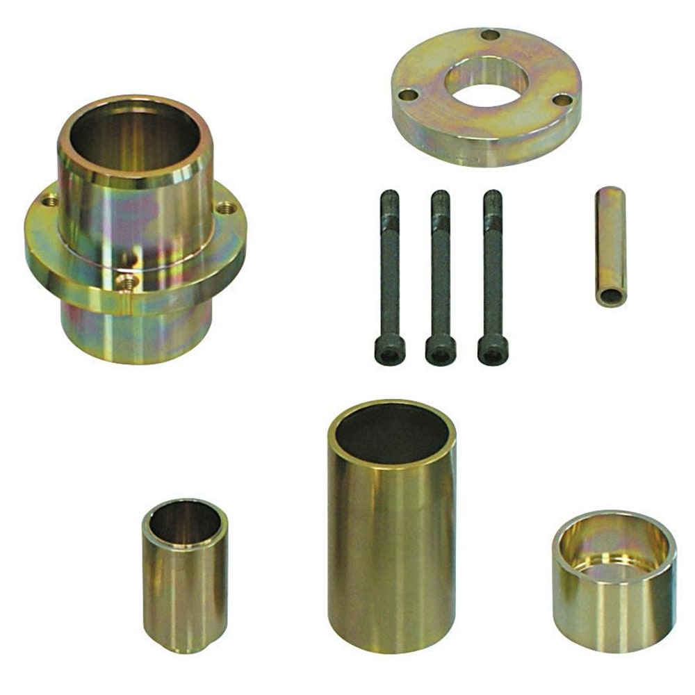 Der Hülsensatz ermöglicht, in Verbindung mit den erforderlichen Antriebsteilen, das schnelle und fachgerechte Aus- sowie Einpressen des Traggelenks aus dem unteren Querlenker direkt am Fahrzeug.
