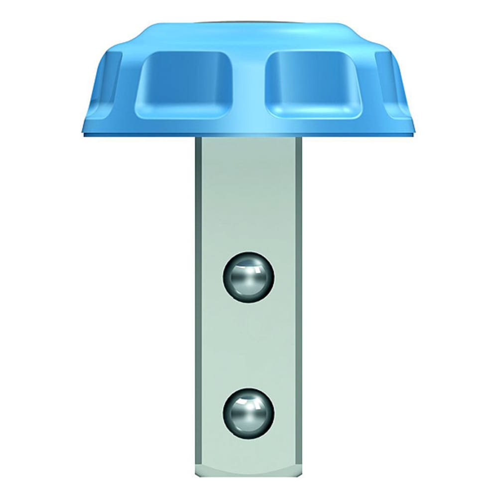 Mit blauer Kunststoffkappe