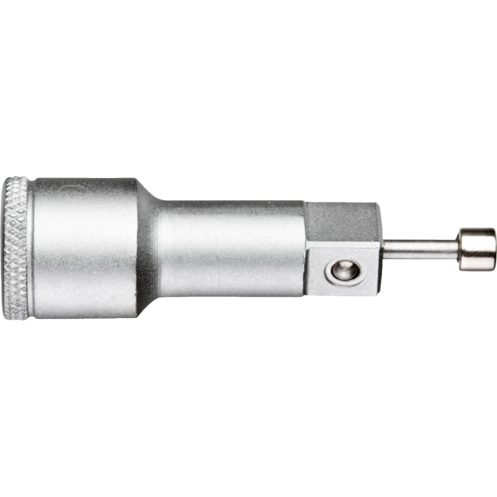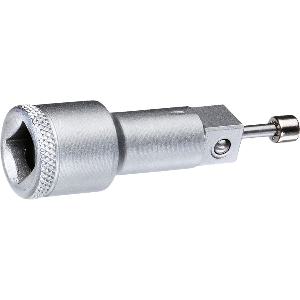 Für handbetätigte Steckschlüsseleinsätze mit Durchgangsbohrung und Vierkantantrieb nach DIN 3120, ISO 1174, mit Kugelarretierung, Der federnd gelagerte Haltemagnet fixiert die Schrauben oder Muttern im Steckschlüsseleinsatz verliersicher, Das magnetische Feld des Haltemagneten hält Schrauben und Muttern ohne direkten Kontakt zentrisch im Steckschlüsseleinsatz