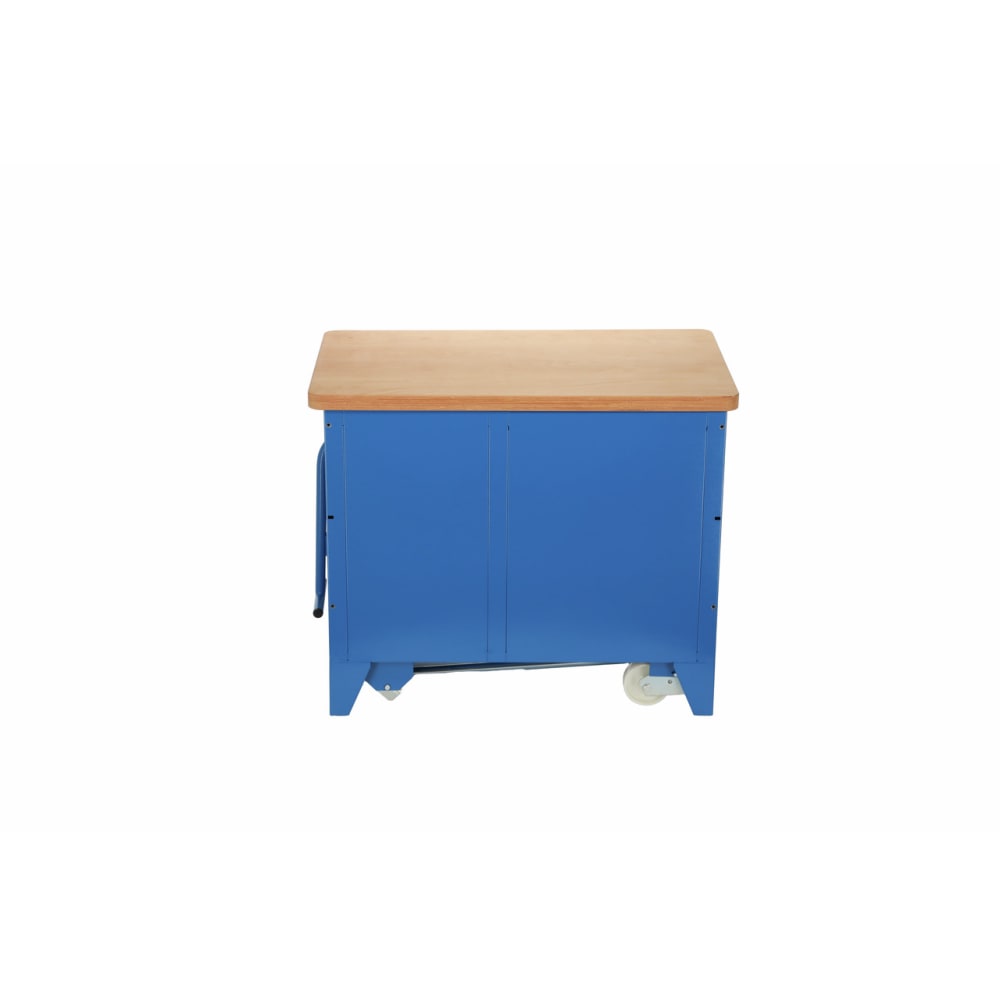 40 mm starke Multiplex Buchen-Schichtholzplatte, Oberfläche durch Leinölfirnis zusätzlich geschützt, Leichtes, sicheres Fahren durch Zuggriff, 5 breite Schubladen (B 480 x T 550 mm) mit Teilauszug (505 mm), herausnehmbar, Tragfähigkeit pro Schublade 40 kg, Gesamttragkraft 2000 kg, im mobilen Betrieb 500 kg, Im abgesenktem Zustand absolut fester Stand