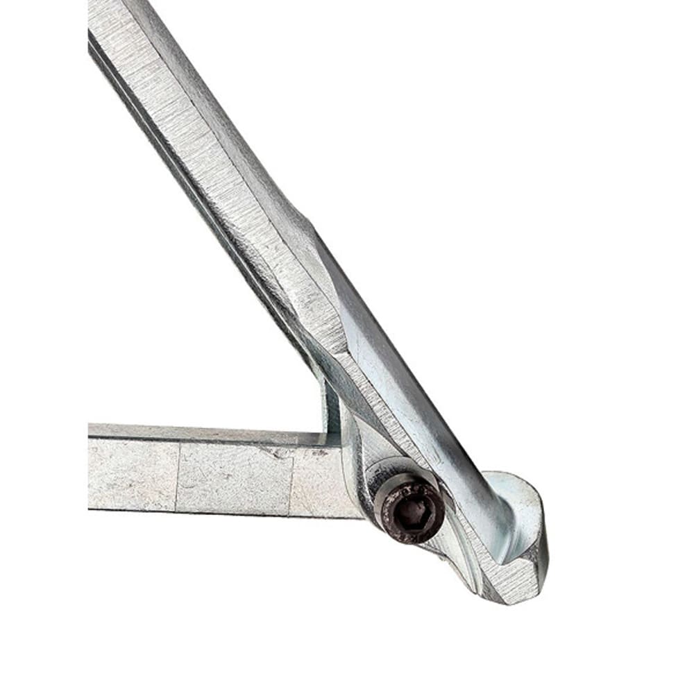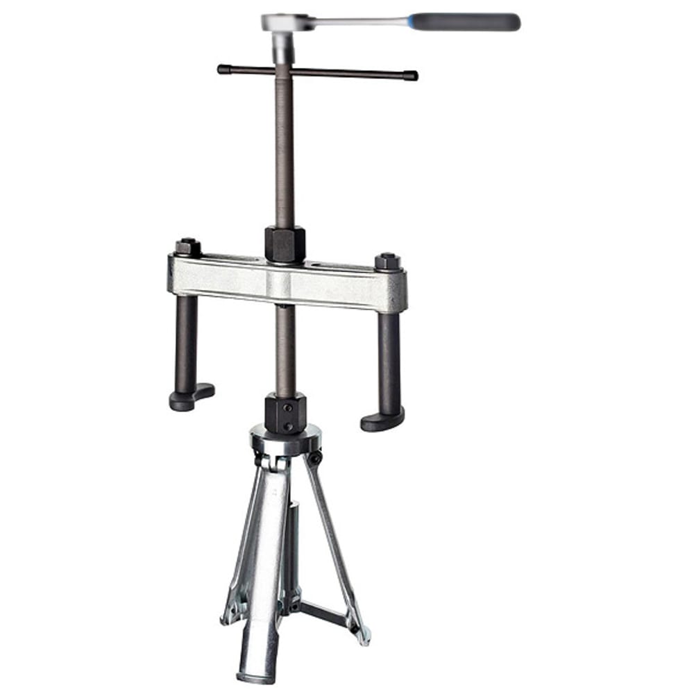 Durch Drehen der Spindel spreizen sich alle drei Backen aufgrund des neuartigen Spreizsystems schnell und problemlos fest unter den Rand der Büchse. Dann die Mutter der Gegenstütze anziehen