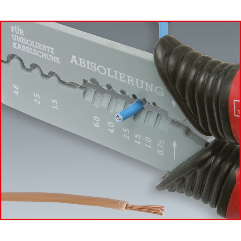 - zum fachgerechten Kabelschneiden und Abisolieren von Drähten von 0,75 - 6,0 mm²