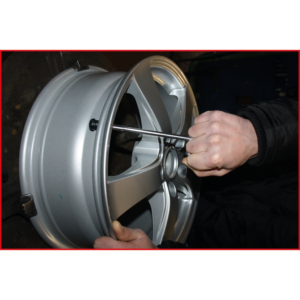 - zum Einziehen von Gummiventilen aller Längen in die Felgenbohrung