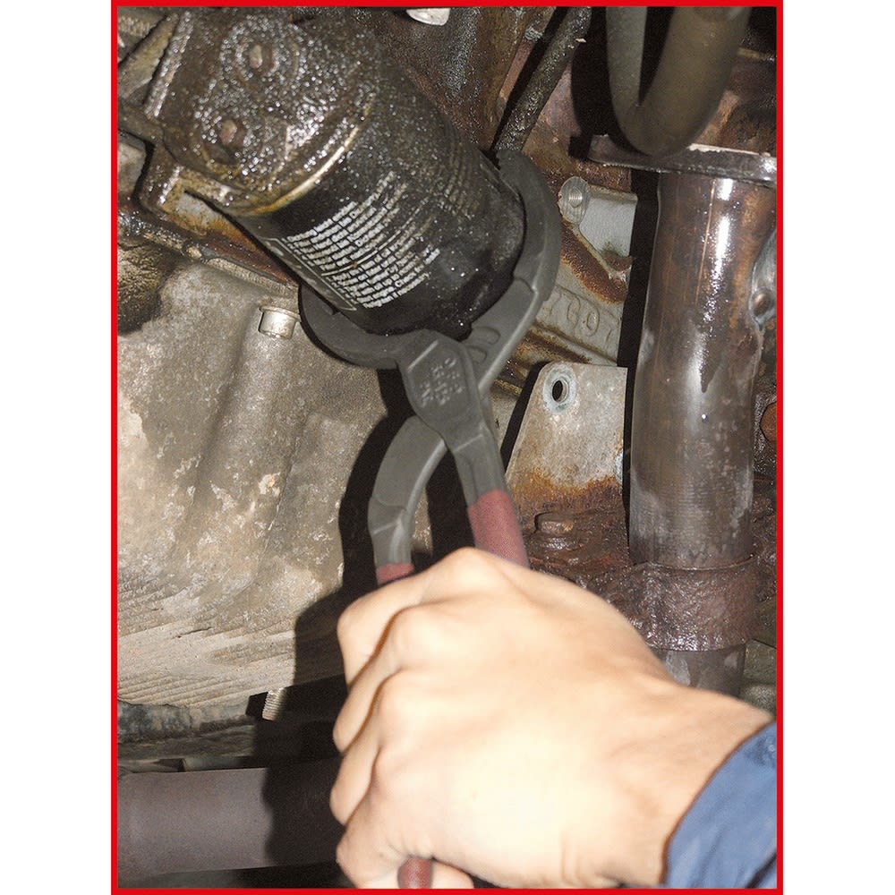 - speziell gehärtete Greifzähne an den Backen geben sicheren Halt am Filter und sorgt für kraftschlüssiges Lösen des Filters
