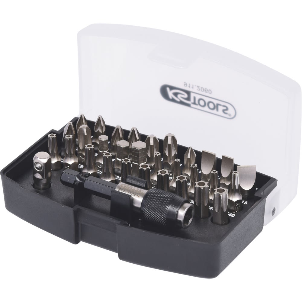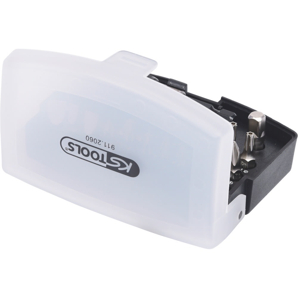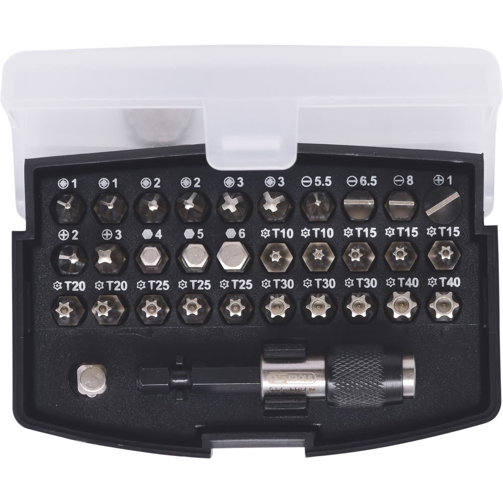 - präzise und ordentliche Anordnung der gängigsten 1/4" Bits