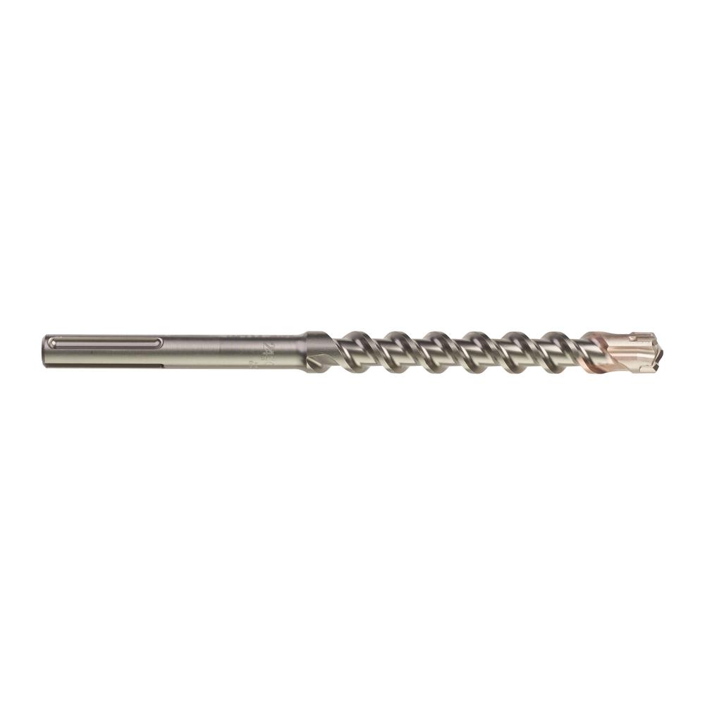 - Grosse Hartmetallschneide mit Armierungsfasen an jeden Schneidenende. Geringere Vibrationen und besser Bohrleistung in Armierungseisen für längere Standzeit