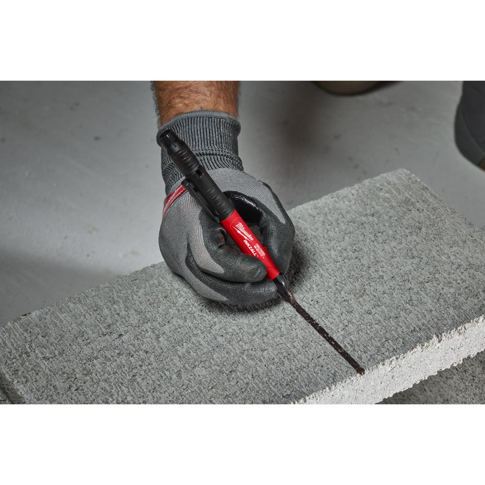 - Die widerstandfähige Spitze ist ideal geeignet zur Beschriftung von rauen Oberflächen wie z. B. OSB oder Beton