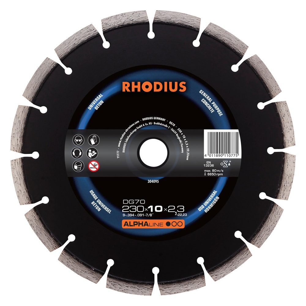 Die DG70 besitzt einen segmentierten Schneidrand. Somit wird eine sehr hohe Schnittgeschwindigkeit bei gleichzeitig maximaler Standzeit erreicht. Das Werkzeug ist nach EN13236 und oSa geprüft und kann im Nassschnitt und auch im Trockenschnitt eingesetzt werden.