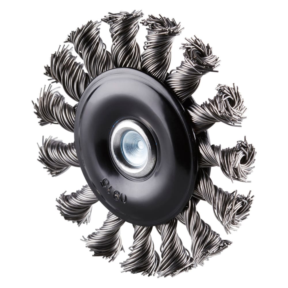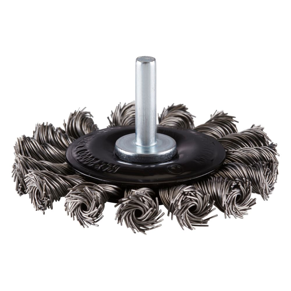 Stahl-Rundbürste mit gezopftem Stahldraht mit 6 mm Schaft für den Einsatz auf Geradschleifern und biegsamen Wellen.- Hohe max. Drehzahl
