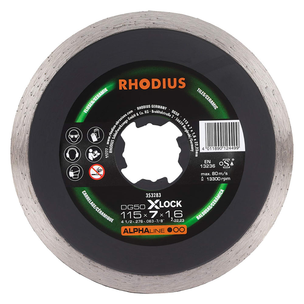 Diese Diamanttrennscheibe ist in den Durchmessern 115mm und 125 mm erhältlich. Die X-LOCK Scheiben von RHODIUS in den Durchmessern 115 mm und 125 mm sind für Winkelschleifer unterschiedlichster Hersteller passend. Alle RHODIUS Scheiben für X-LOCK sind zudem rückwärtskompatibel, das heisst: Sie können auch auf einem herkömmlichen Winkelschleifer mit Aufnahme für eine 22,23 Bohrung genutzt werden.