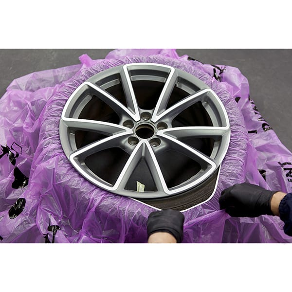 Flexible Lösung zum Abdecken von Reifen beim Nachspritzen der Felgen. Einfache Handhabung durch praktischen und hochelastischen Gummizug, enorme Zeitersparnis und Materialeinsparung.