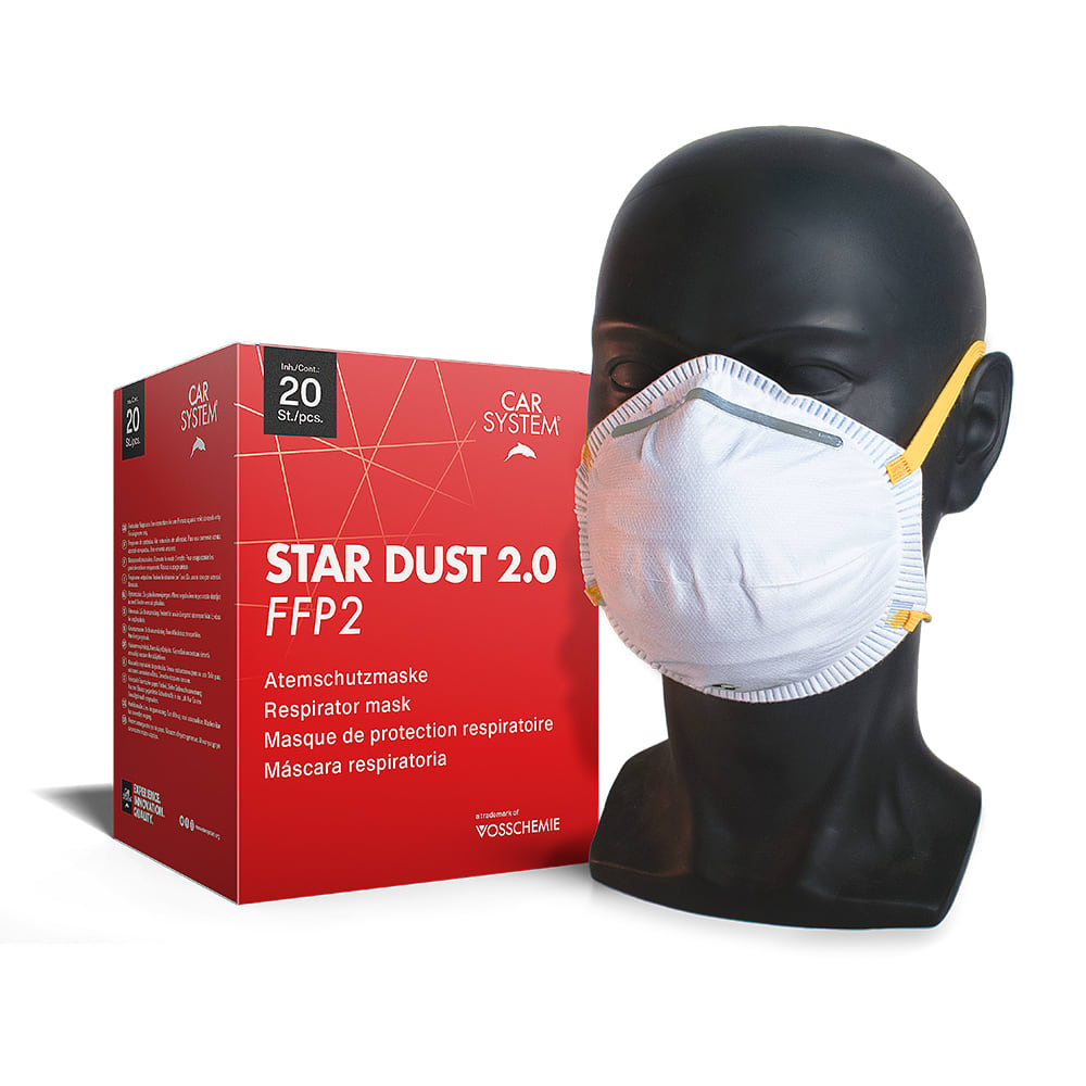 Carsystem Star Dust 2.0 FFP2 Atemschutzmaske – sicher, bequem, zuverlässig. Die Star Dust 2.0 FFP2 Maske schützt zuverlässig vor gesundheitsschädlichen Partikeln auf Wasser- und Ölbasis. Mit anpassbarem Aluminium-Nasenstück, weichem Innenvlies und elastischen Kopfbändern bietet sie hohen Tragekomfort – auch über längere Zeit. Sie ist kombinierbar mit Schutzbrillen und damit vielseitig einsetzbar. Anwendungshinweis: Nach jeder Arbeitsschicht wechseln – für konstanten Schutz.