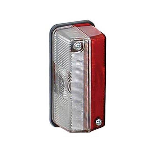 - Lichtscheibe vorne glasklar, hinten rot.