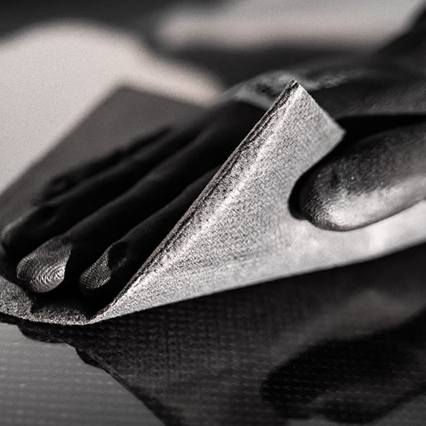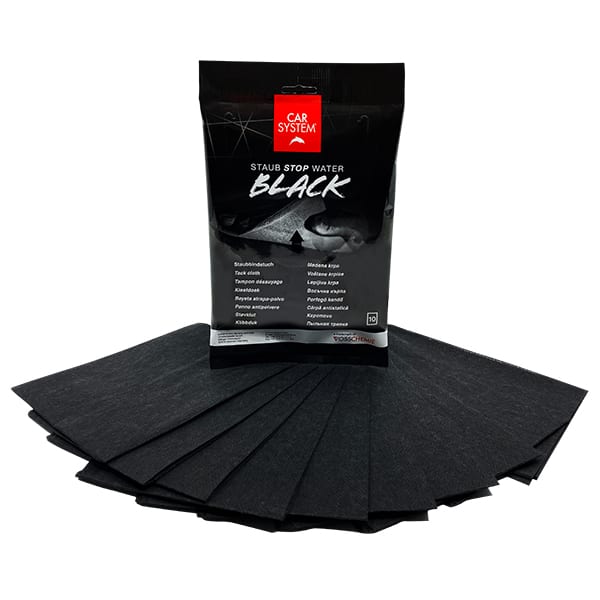 Schwarzes Staubbindetuch aus Vliesstoff mit einer fast unerschöpflichen Staubaufnahmefähigkeit.