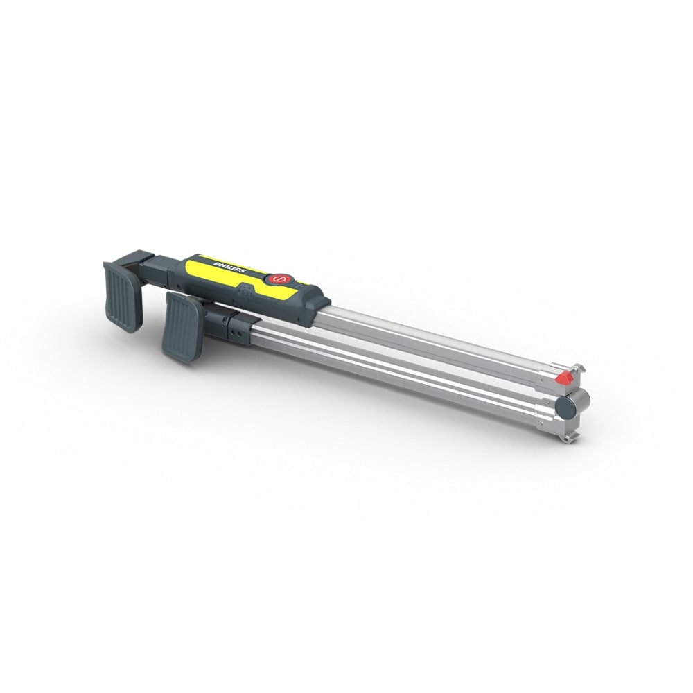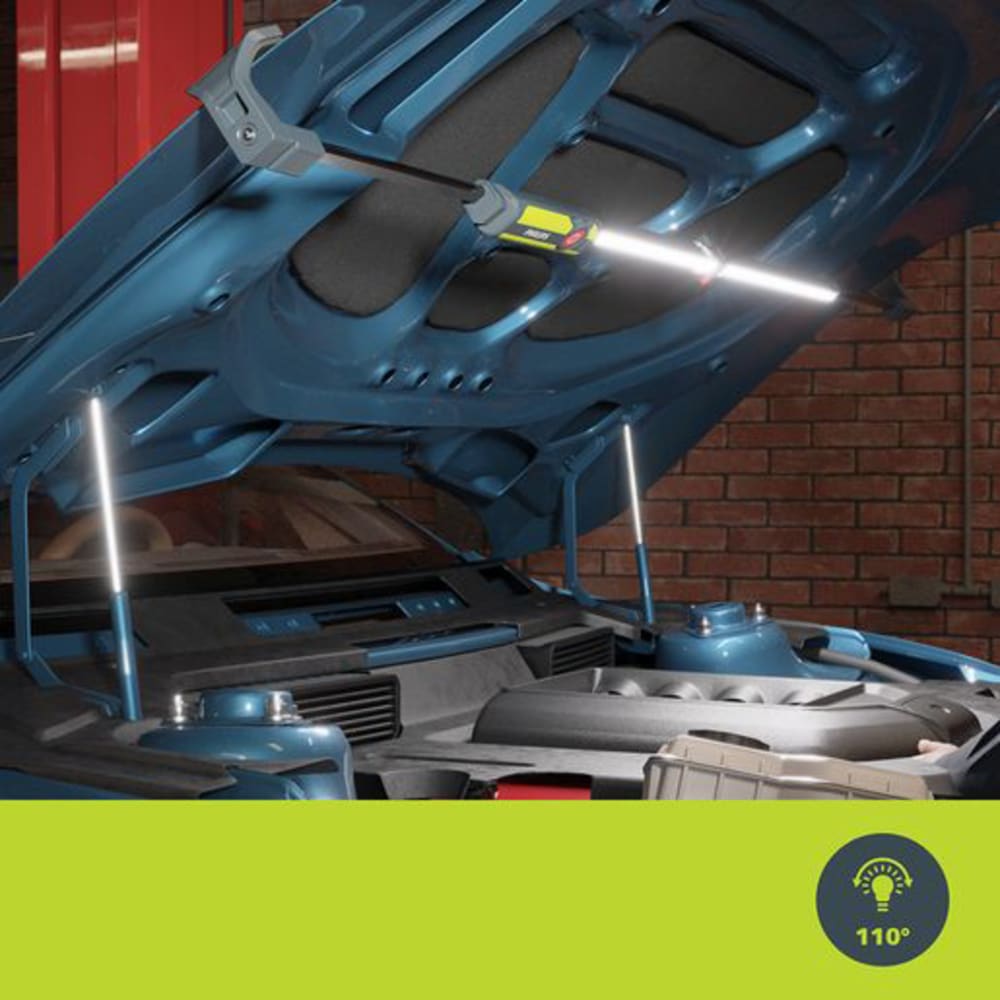 Les lampes LED pour compartiment moteur Philips Xperion6100 vous offrent, avec jusqu'à 2400 lumens (alimentation secteur), une lumière LED extra claire mais naturellement blanche de 6500 kelvins, qui est en outre graduable en continu. L'angle de rayonnement large de 110°, les deux crochets télescopiques extensibles jusqu'à 2,1 m et pivotant à 360°, ainsi qu'un module d'éclairage pliable au centre, en font un compagnon extrêmement performant et en outre flexible lorsque vous devez voir chaque détail lors de travaux exigeants. Idéal pour les travaux sur les voitures, les camionnettes et les camions.