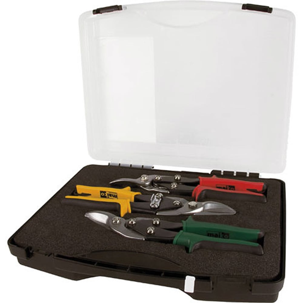 Assortiment G5 522 02 se compose de trois ciseaux, droite, gauche et droit dans un coffre en matière plastique robuste.