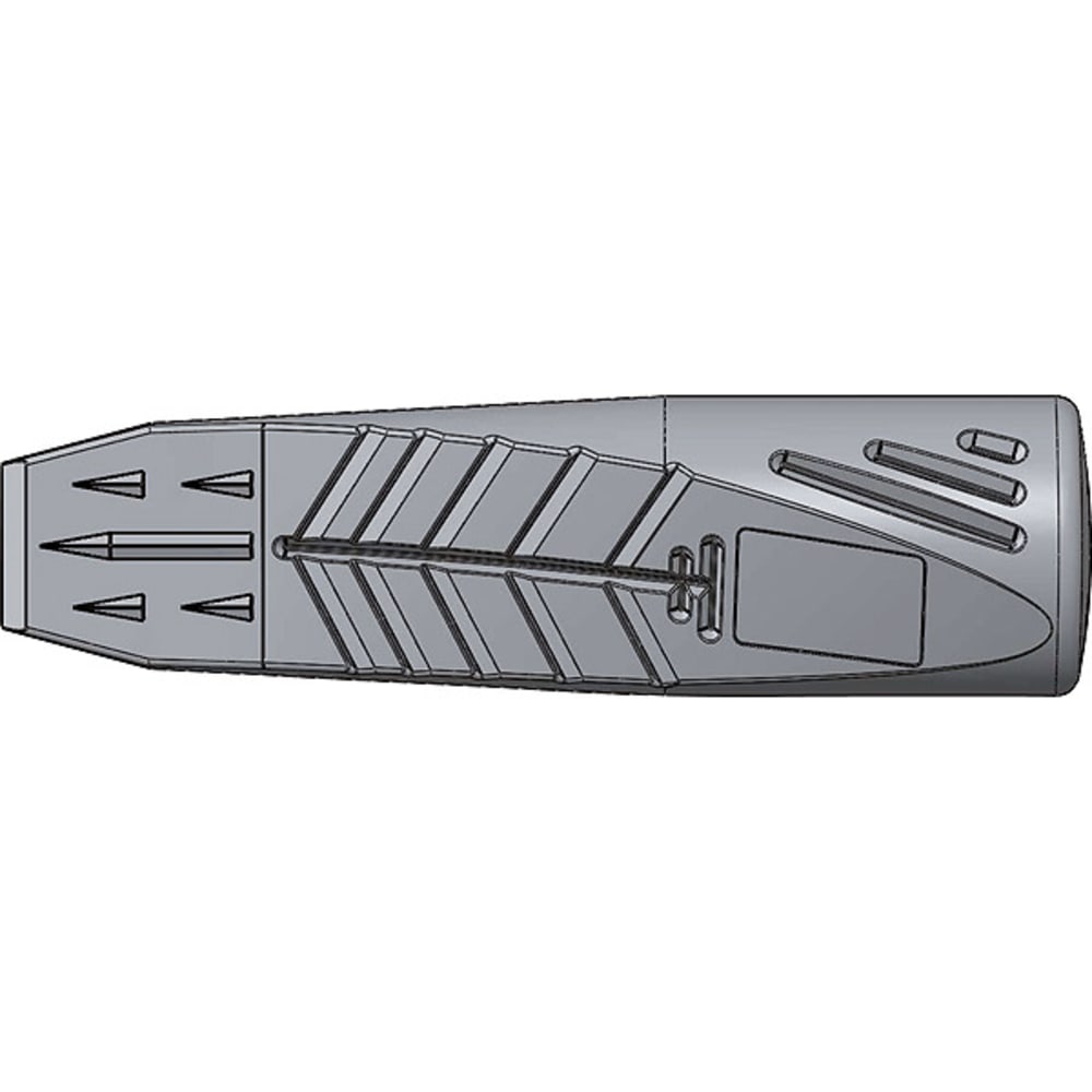 - Des rainures gravées à angle aigu sur face antérieure, des dents de scie supplémentaires au dos et des ardillons des deux côtés empêchent le coin de glisser ou de rebondir lors de l'enfoncement, en particulier dans du bois gelé