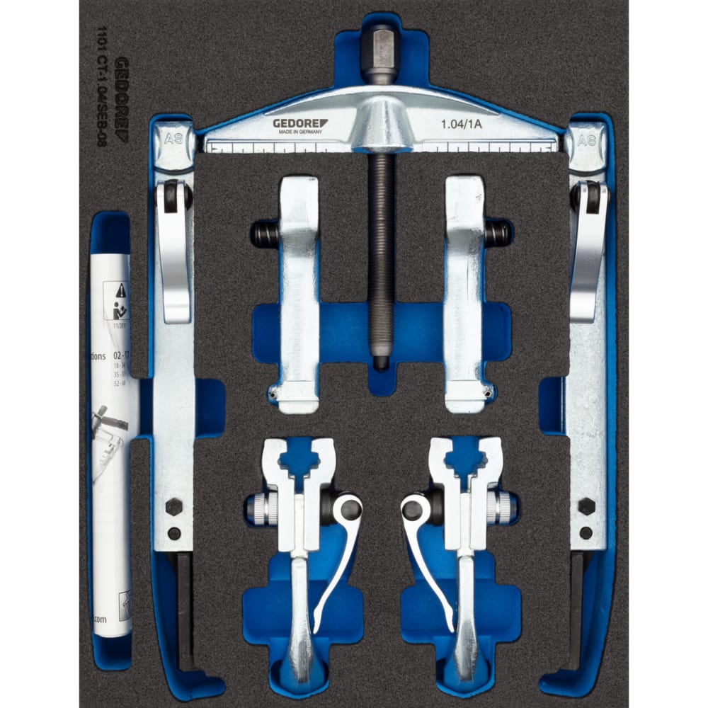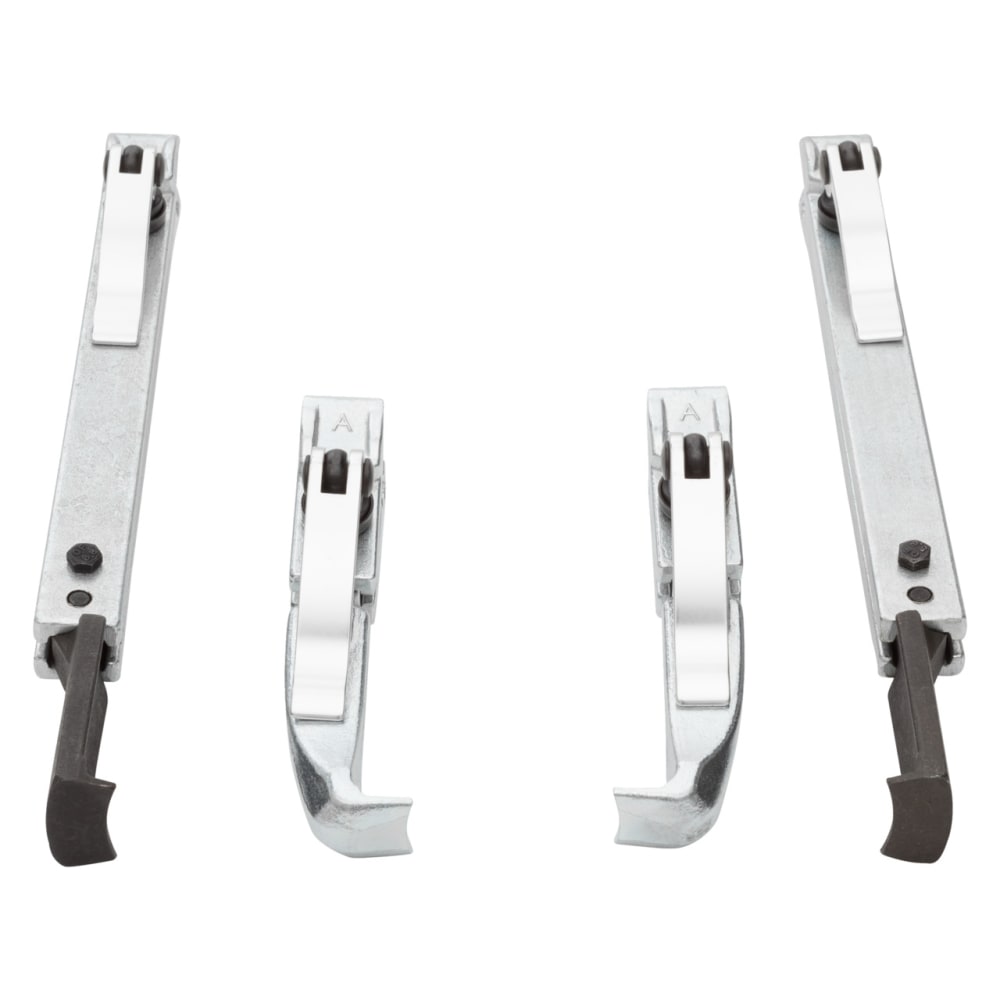 Pour desserrer les connexions coincées sur les arbres ou dans les boîtiers, Grâce aux largeurs de portée possibles, réglables en continu jusqu'à 130 mm / profondeurs de serrage 100, 200, 250, 350 mm, Travail variable, rapide et sûr grâce au mécanisme de serrage rapide, au frein à crochet, au crochet pour les espaces de montage restreints, Combinaison de 8 extracteurs différents possible