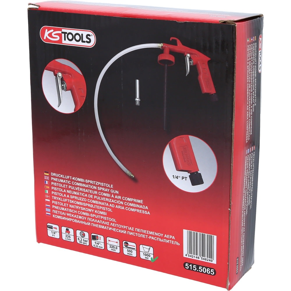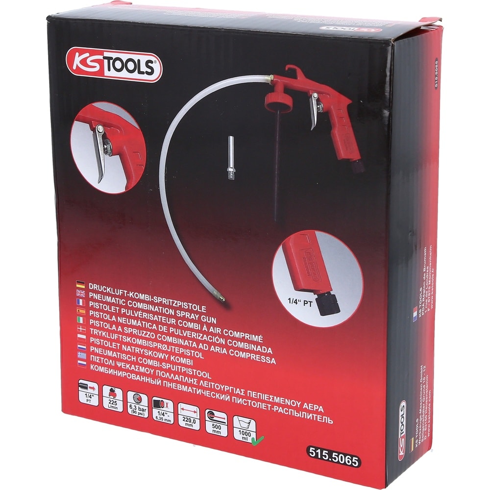 - Le tuyau flexible fourni de 500 mm avec buse de pulvérisation pour brouillard de cire dans toutes les directions permet de mettre de la cire sans problème dans les espaces creux et intermédiaires