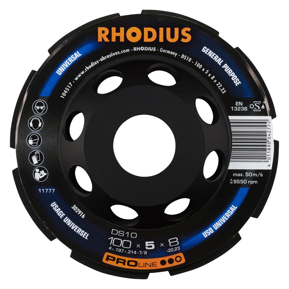 Cet outil a été contrôlé conformément aux normes EN13236 et oSA. Grâce à son diamant industriel de qualité, le DS10 est particulièrement performant. Le plateau de surfaçage diamant est en outre soudé au laser.