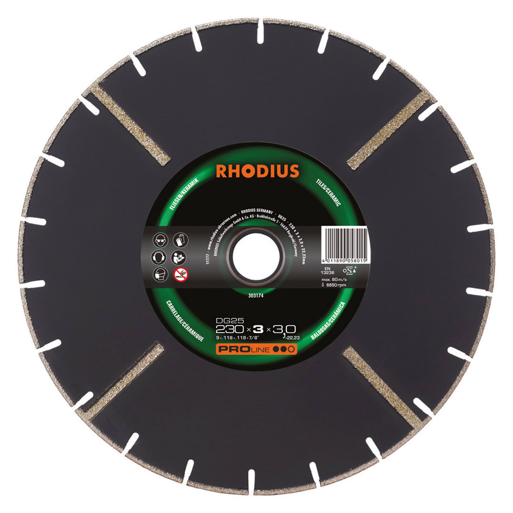 Le DG25 a été développé tout spécialement pour le traitement dumarbre. Cet outil de qualité de RHODIUS convient également très bien pour le traitement des carrelages émaillés.