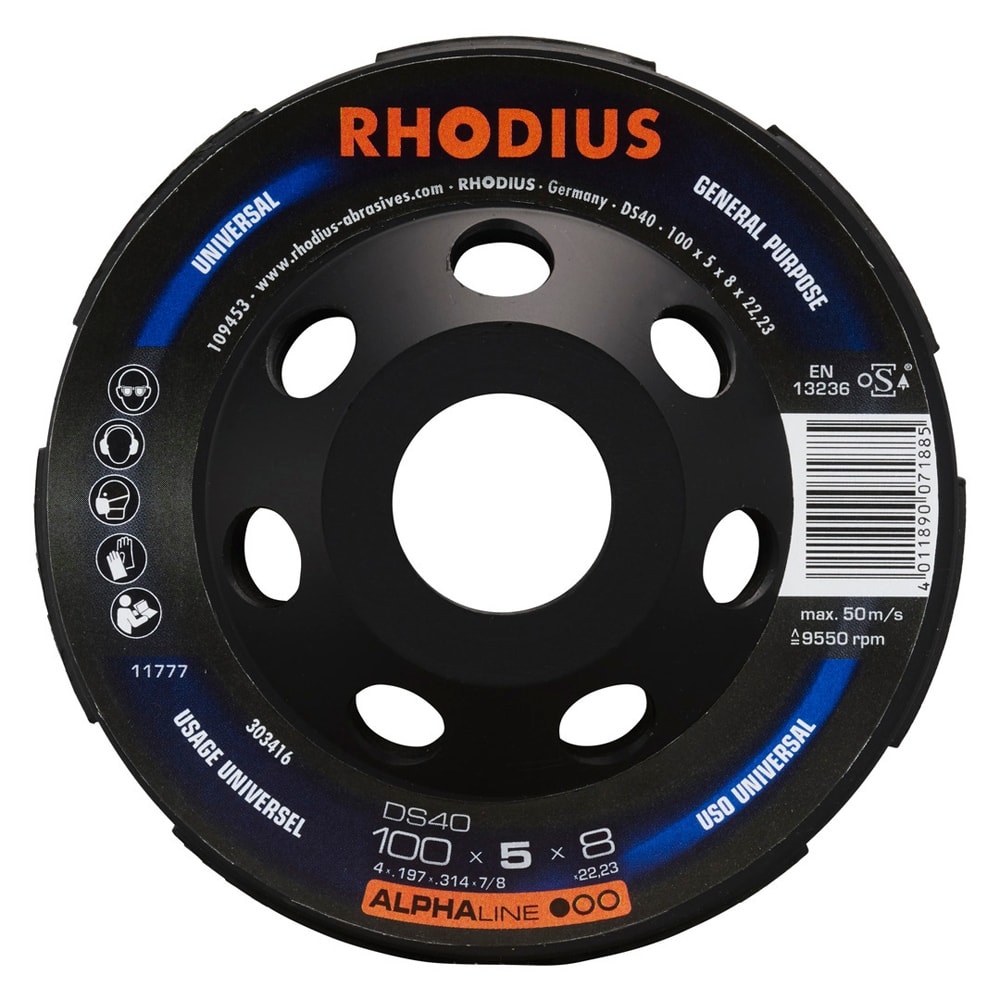 Cet outil a été contrôlé conformément aux normes EN13236 et oSA. Grâce à son diamant industriel de qualité, le DS40 est particulièrement performant. Le plateau de surfaçage diamant est en outre soudé au laser.