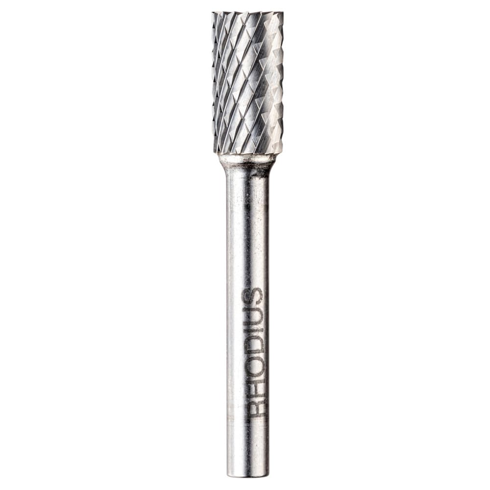 Les fraises de forme B (cylindrique avec denture en bout) conformes à la norme DIN 8032 sont disponibles dans des diamètres de tête de 6 à 12,7 mm. Le diamètre de la tige est de 6 mm.