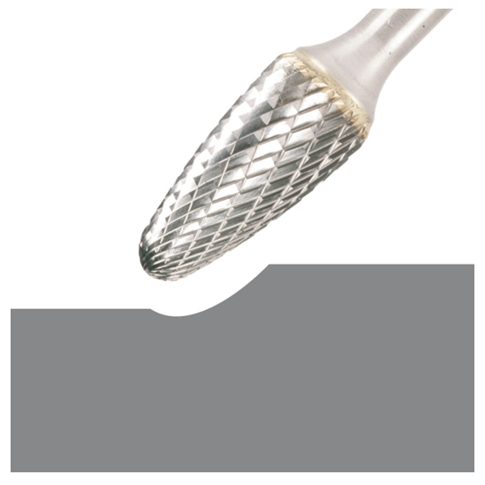 Les fraises de forme F (ogive à bout arrondi) conformes à la norme DIN 8032 sont disponibles dans des diamètres de tête de 3 à 16 mm. Le diamètre de la tige est de 3 ou 6 mm.