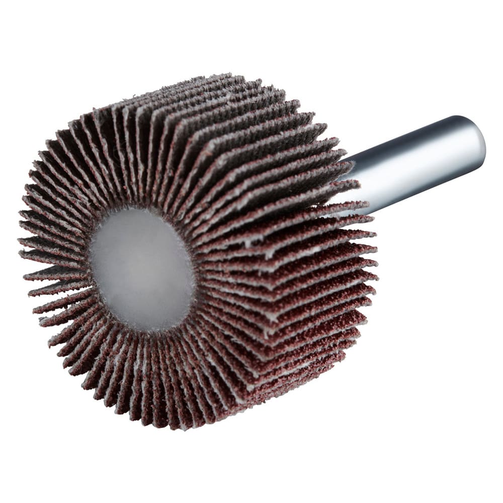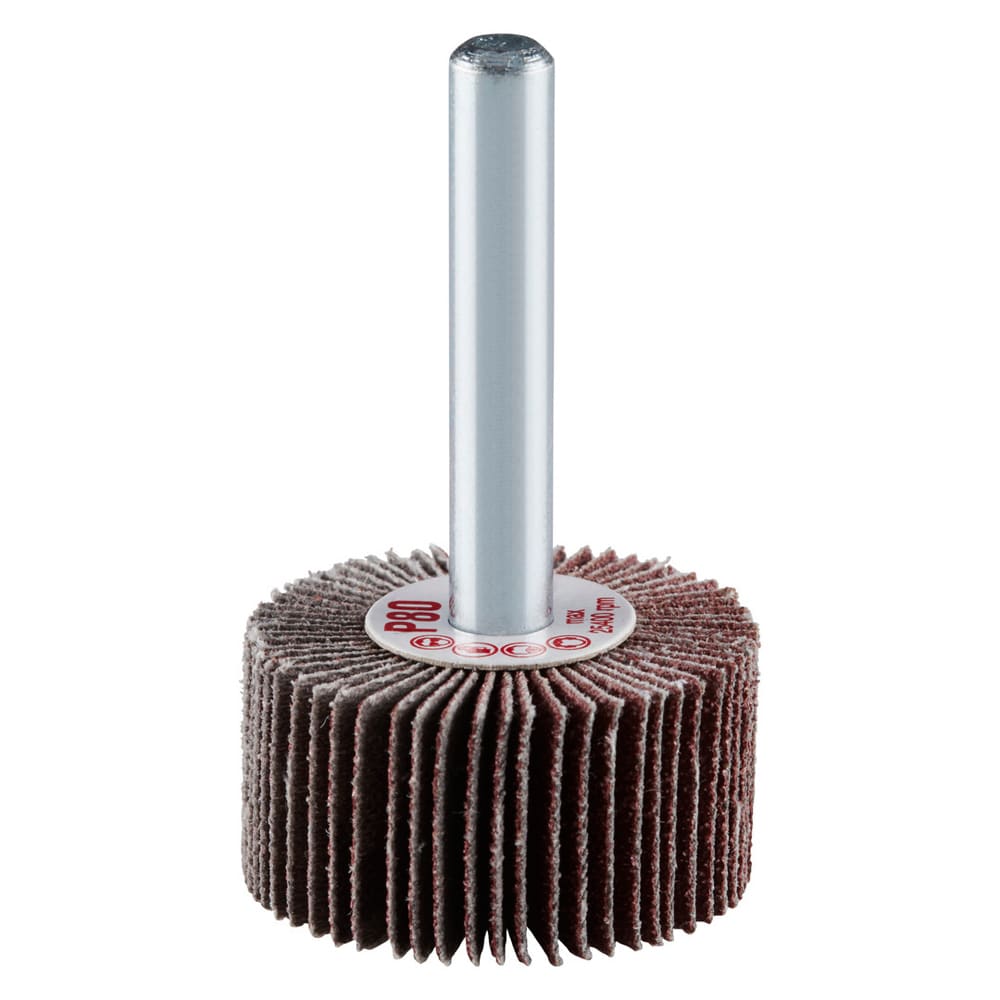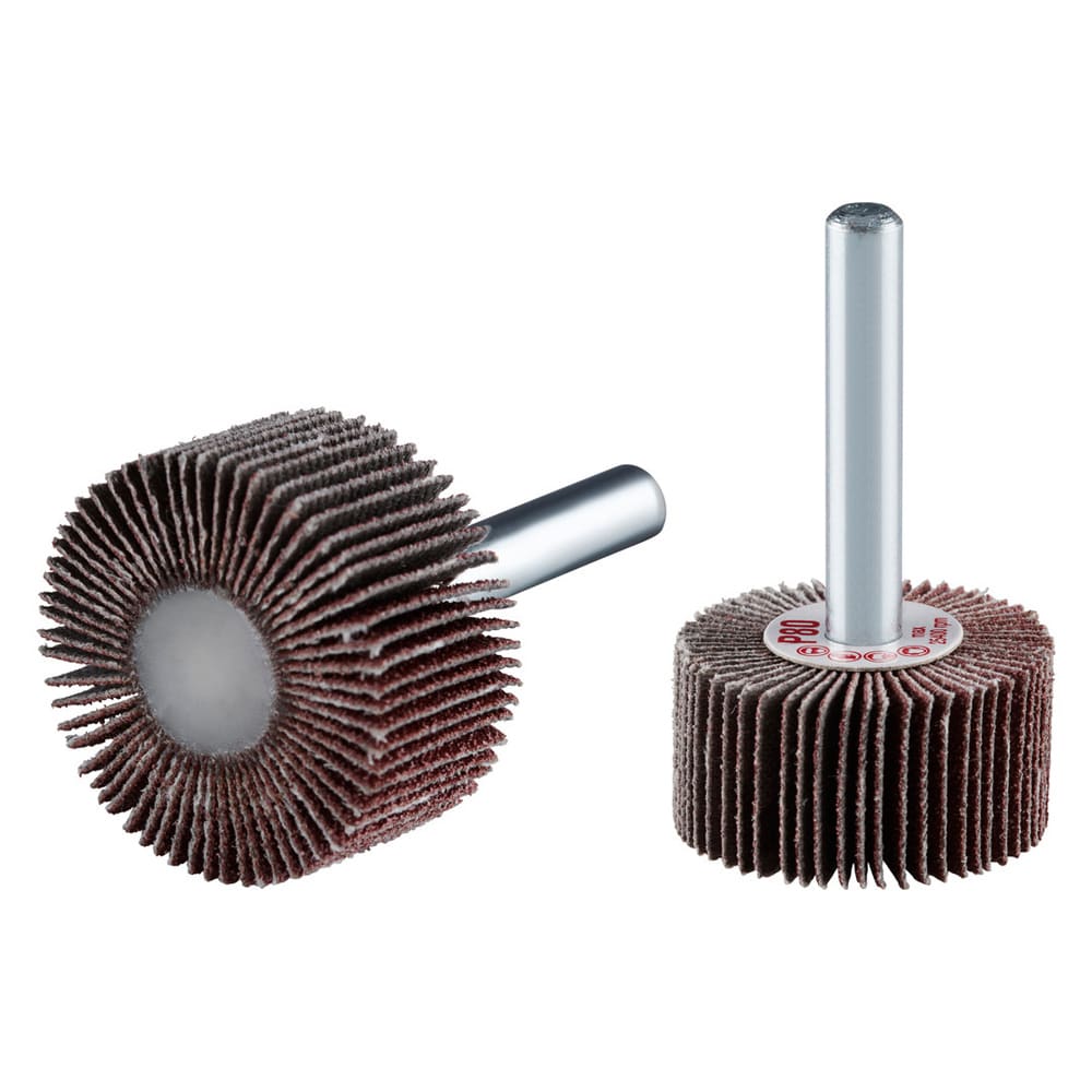 La roue à lamelles FS de RHODIUS a été conçue pour être utilisée sur les meuleuses droites ou les machines à entraînement d’arbre flexible avec logement de tige de 6 mm.