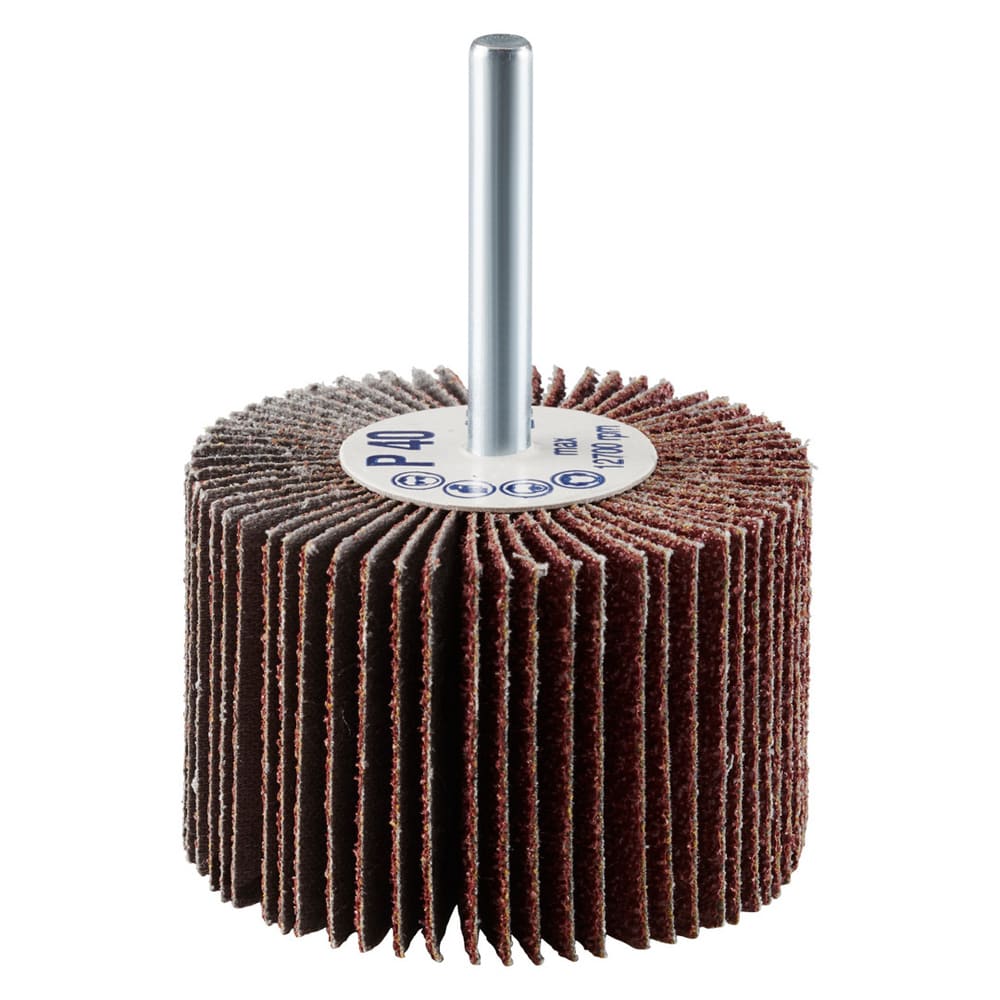 La roue à lamelles FS de RHODIUS a été conçue pour être utilisée sur les meuleuses droites ou les machines à entraînement d’arbre flexible avec logement de tige de 6 mm.
