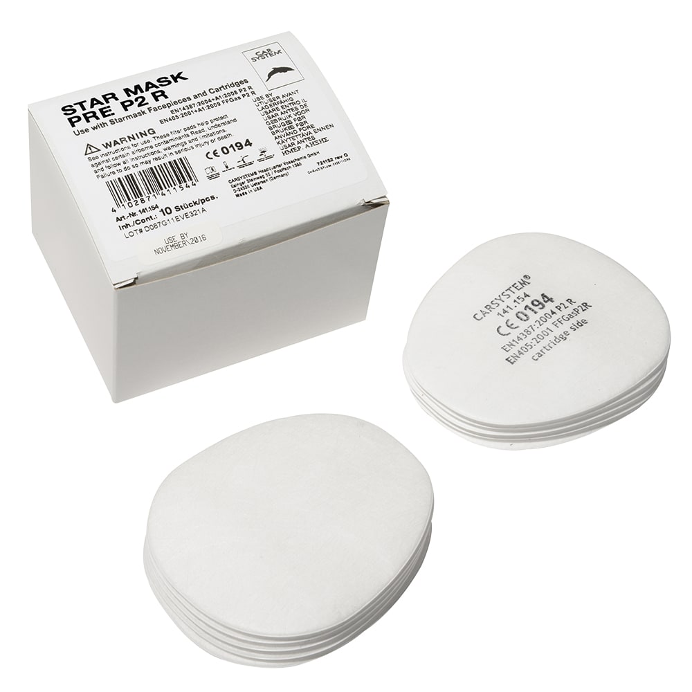 Carsystem Star Mask Pre P2 R Vorfilter sont des préfiltres de classe P2 pour cartouches filtrantes à charbon Star Mask Refill.