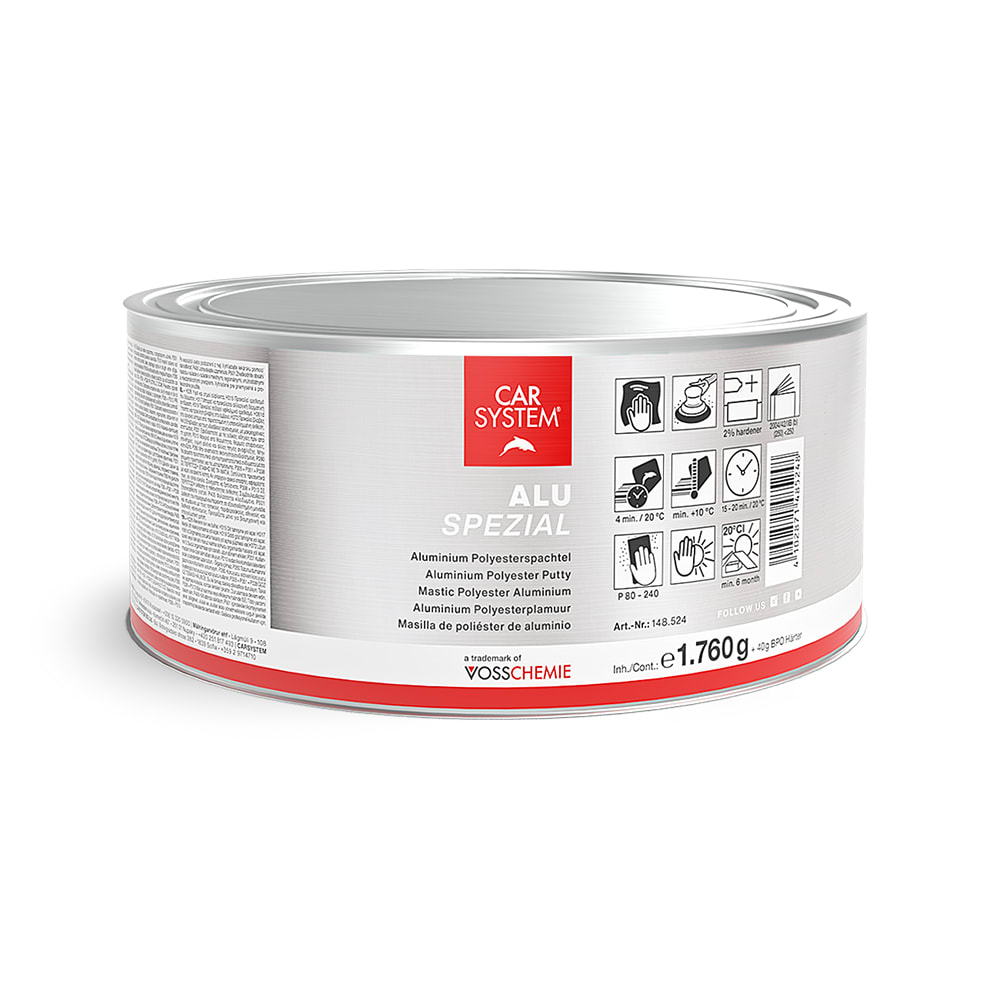 Le mastic polyester spécial Carsystem Alu Spezial est un mastic d'une extrême dureté, destiné au remplissage de très profondes irrégularités, à la restauration d'arêtes déformées et aux pièces en aluminium collées. Peut se substituer à l'étain pour l'aluminium.Caractéristiques :