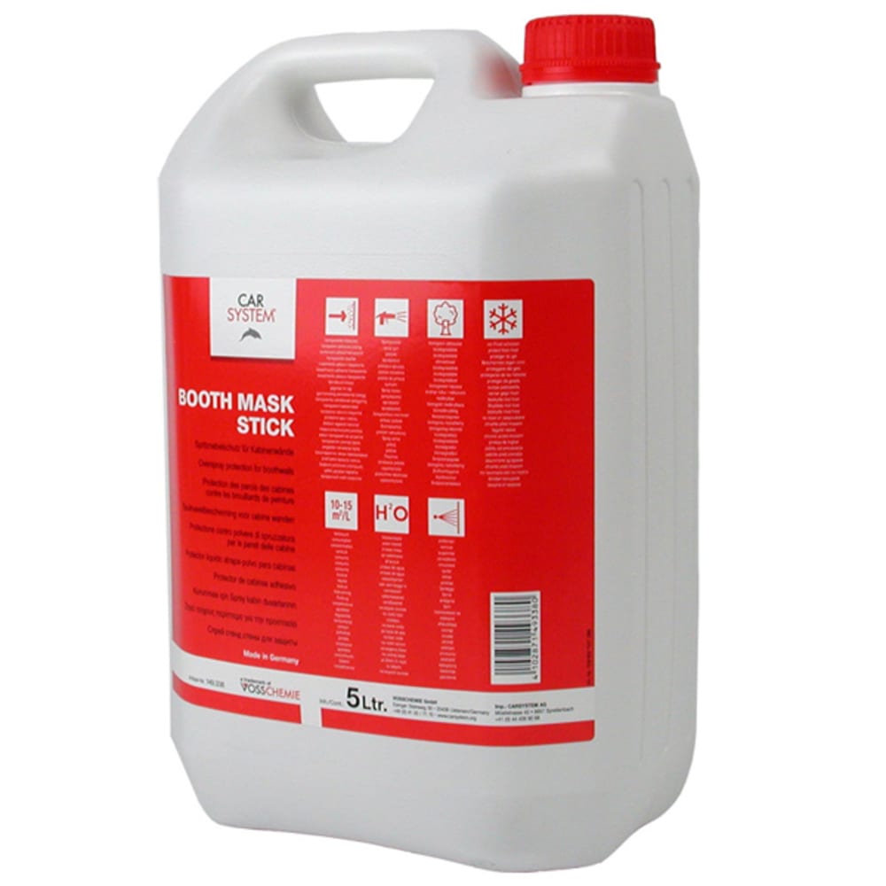 Carsystem Booth Mask Stick est un vernis de protection de base aqueuse, transparent et pulvérisable, pour cabines. Il forme un film de protection transparent et collant. Il est biodégradable, sa surface collante retient la poussière, et il se nettoie à l'eau.