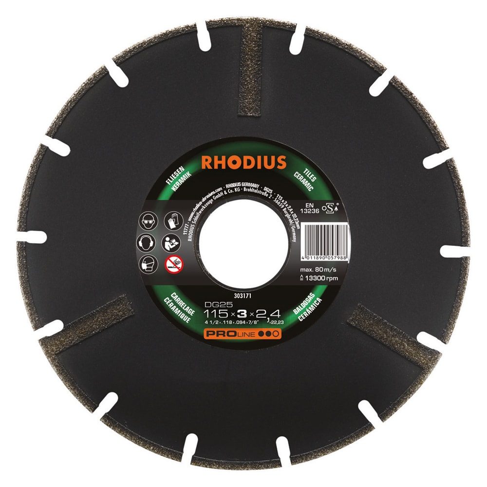 Le DG25 a été développé tout spécialement pour le traitement dumarbre. Cet outil de qualité de RHODIUS convient également très bien pour le traitement des carrelages émaillés.