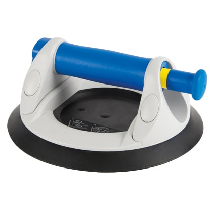 D'autre part, le grand bouton de soupape assure une ventilation plus rapide afin de réduire le vide. Il est ainsi plus facile de fixer la ventouse sur le matériau et de la retirer après utilisation. L'augmentation de la surface de préhension offre également le meilleur confort de prise en main. Un anneau en plastique placé sur le disque en caoutchouc offre encore plus de stabilité et de protection.