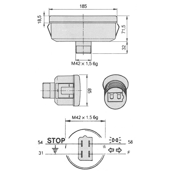 - connexion à cosses 4 pôles, filetage M42 x 1,5.