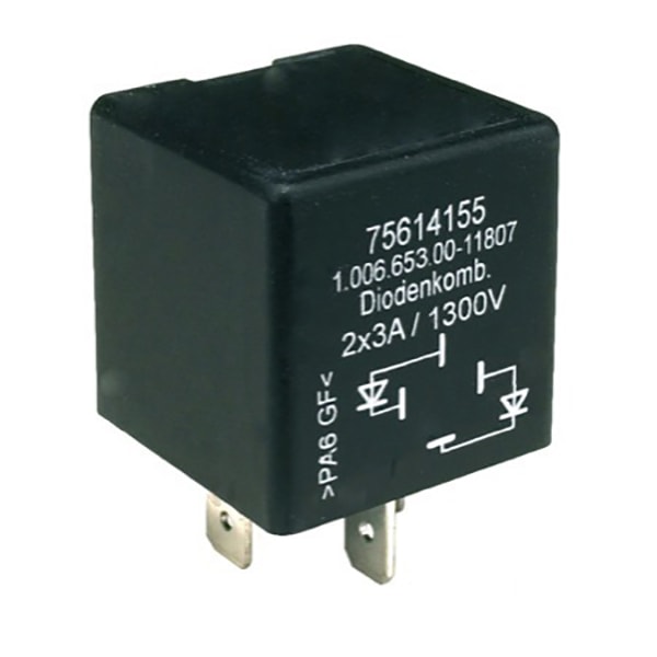 Diodes, 12V, 24V, B30mm, H30mm, 3A, T30mm, 6 AV, 3 A, bis 1300V, -40°C, +85°C, Flachstecker